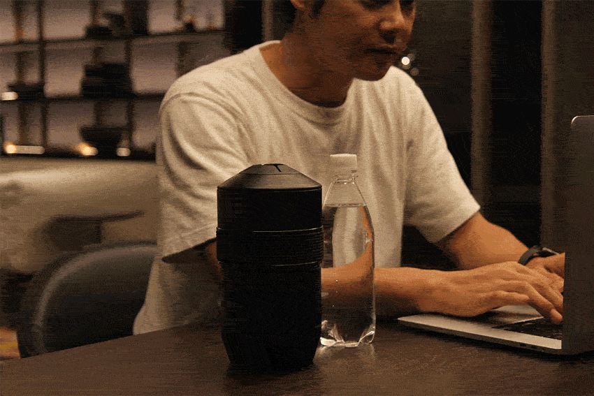 冷蔵庫などで冷やしたボトルを"LAZY BOTTLE"にインしたら、上部カップをボトルの高さに合わせてロックするだけ!