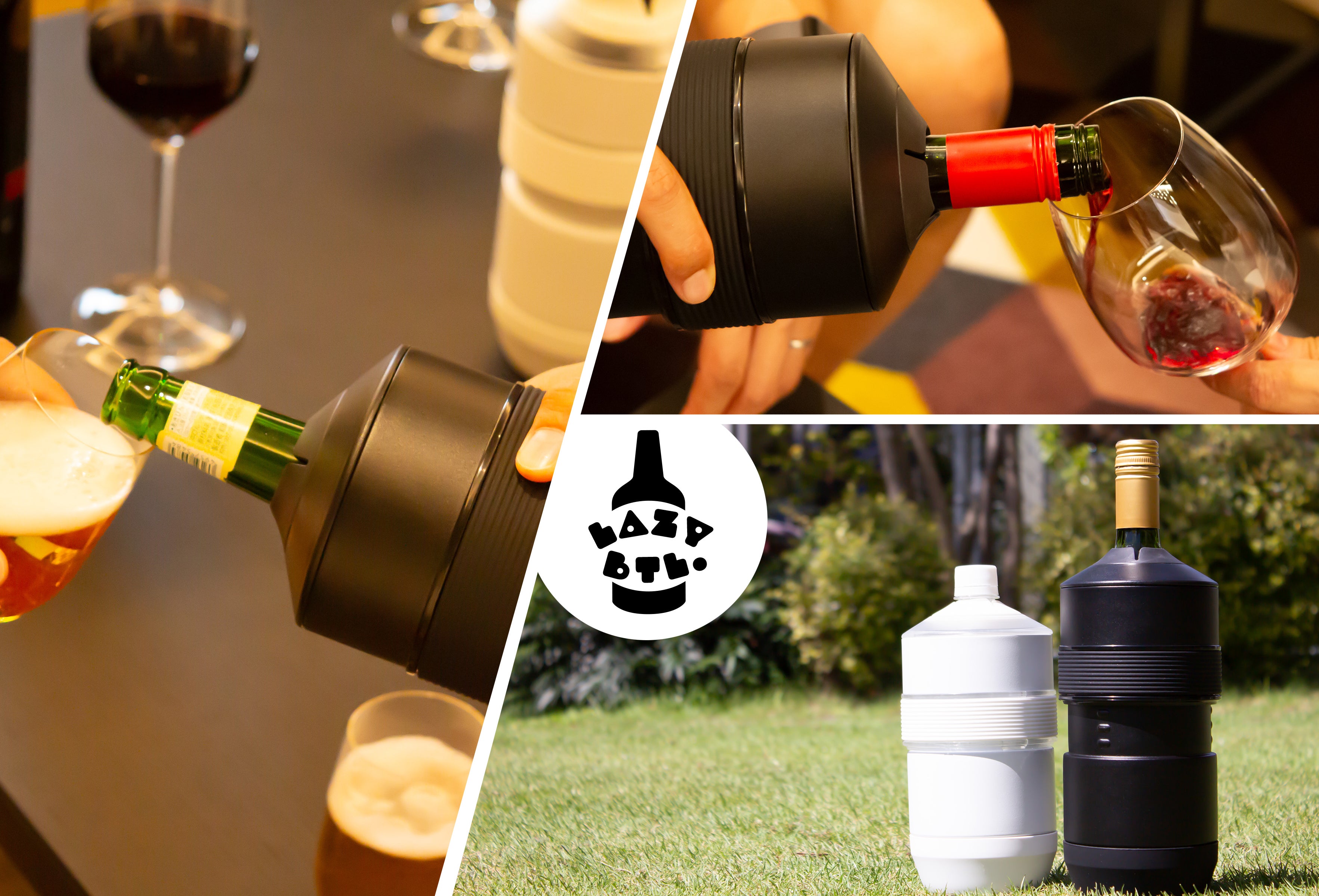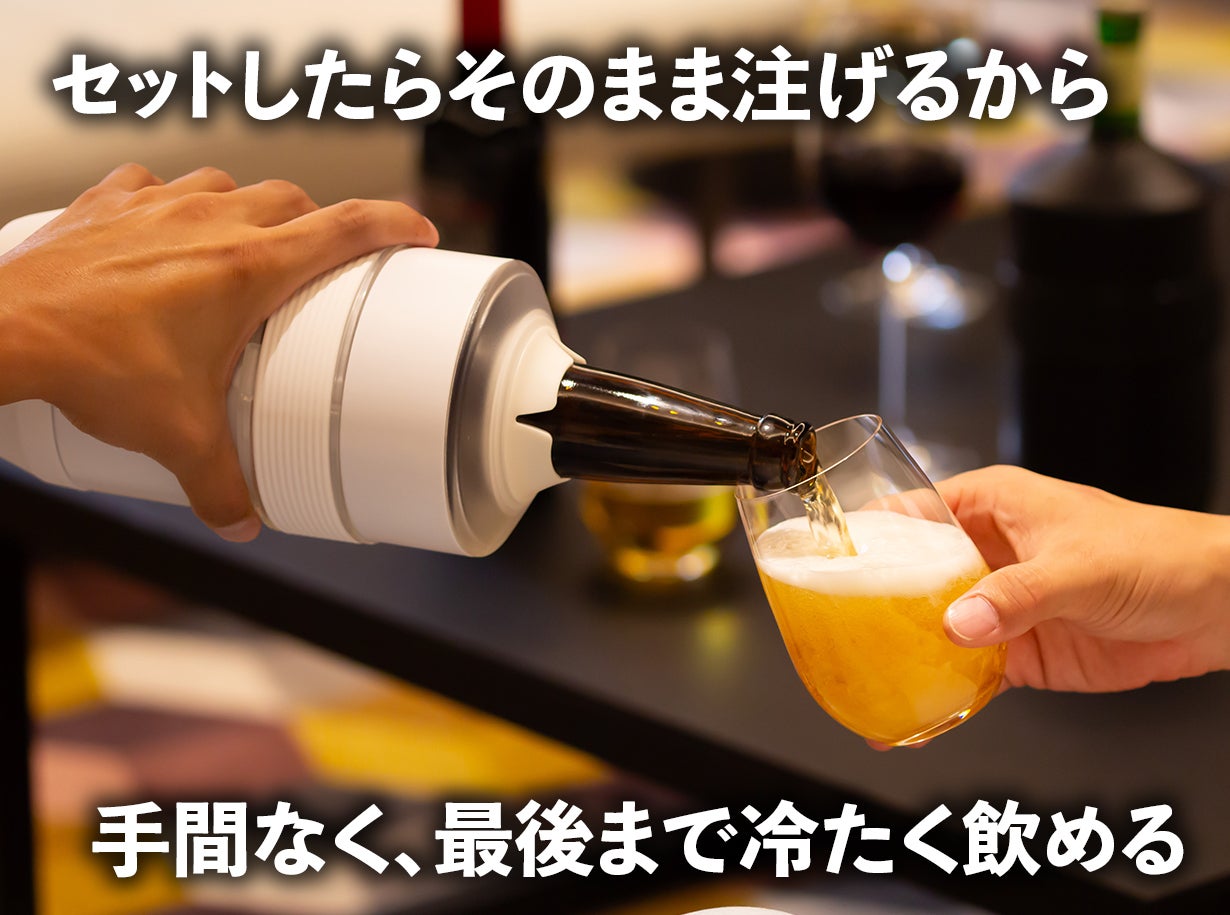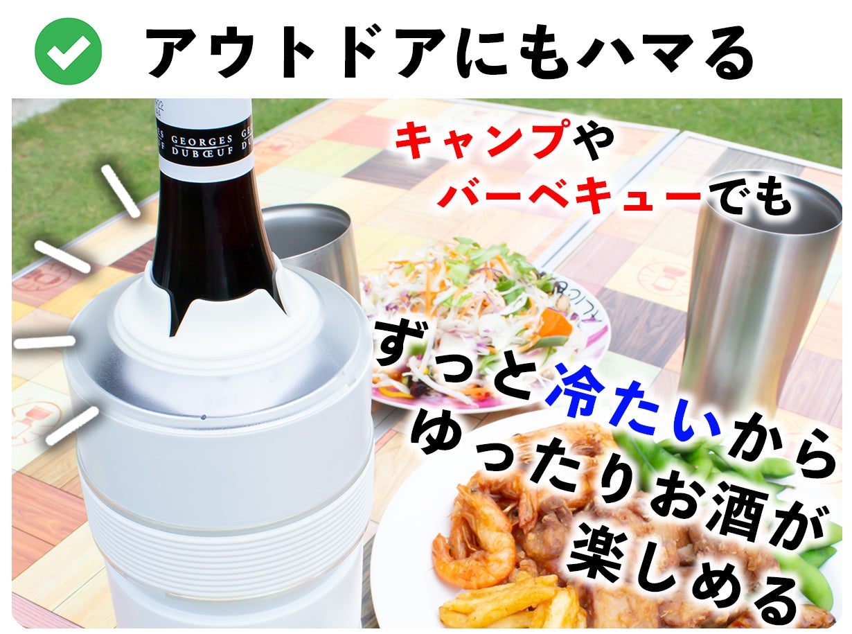アウトドアやBBQでも活躍し、ワインだけでなくペットボトルや瓶ビールなど様々なボトルに対応します。