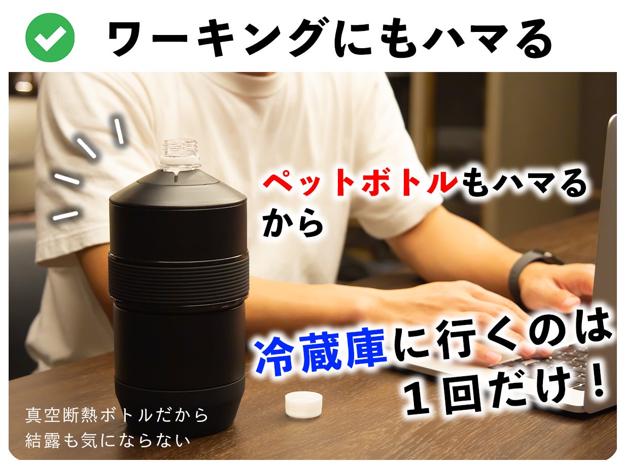 特に屋外ペットボトル使用時にはオススメの"保冷剤プラス"で保冷時間アップ!