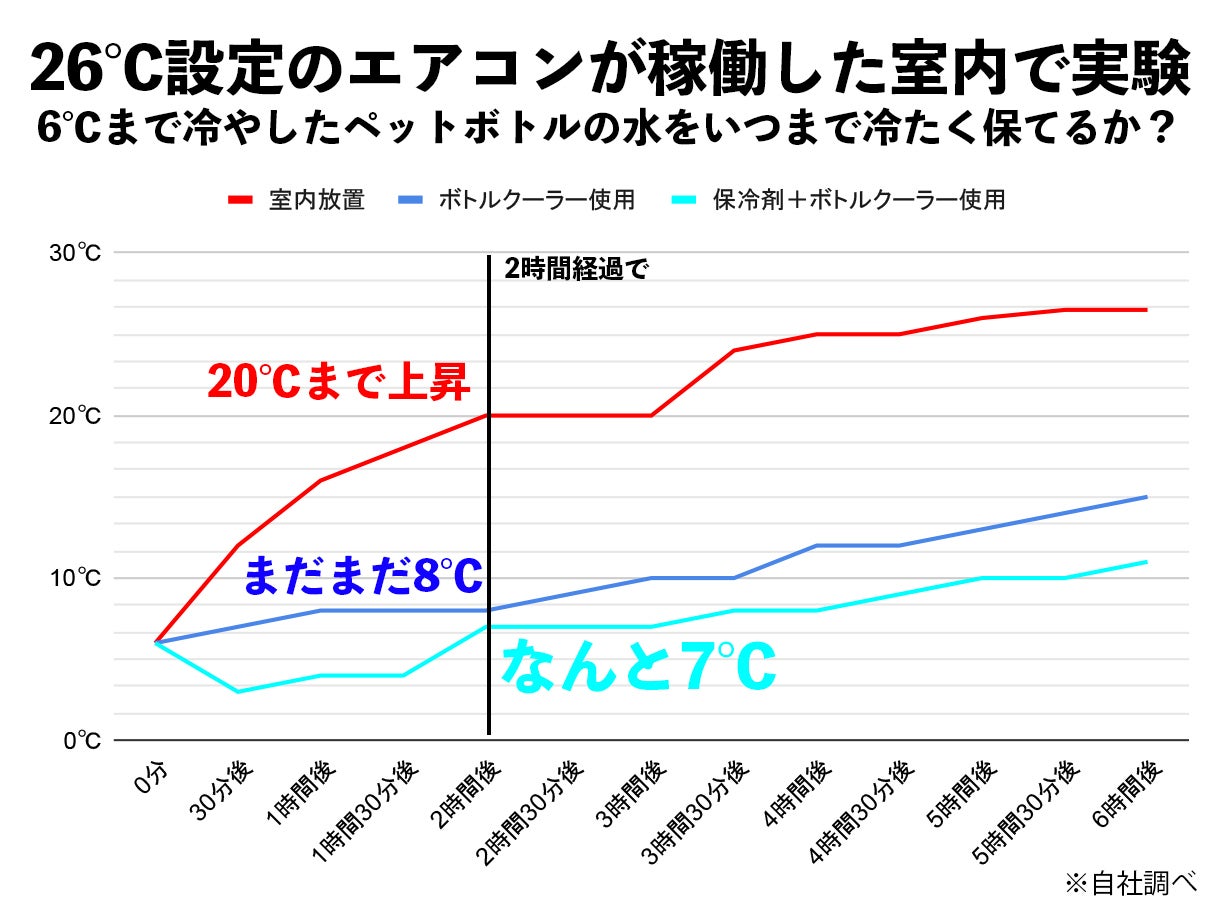 冷蔵庫で6℃まで冷やしたペットボトルの水で実験!(自社調べ)