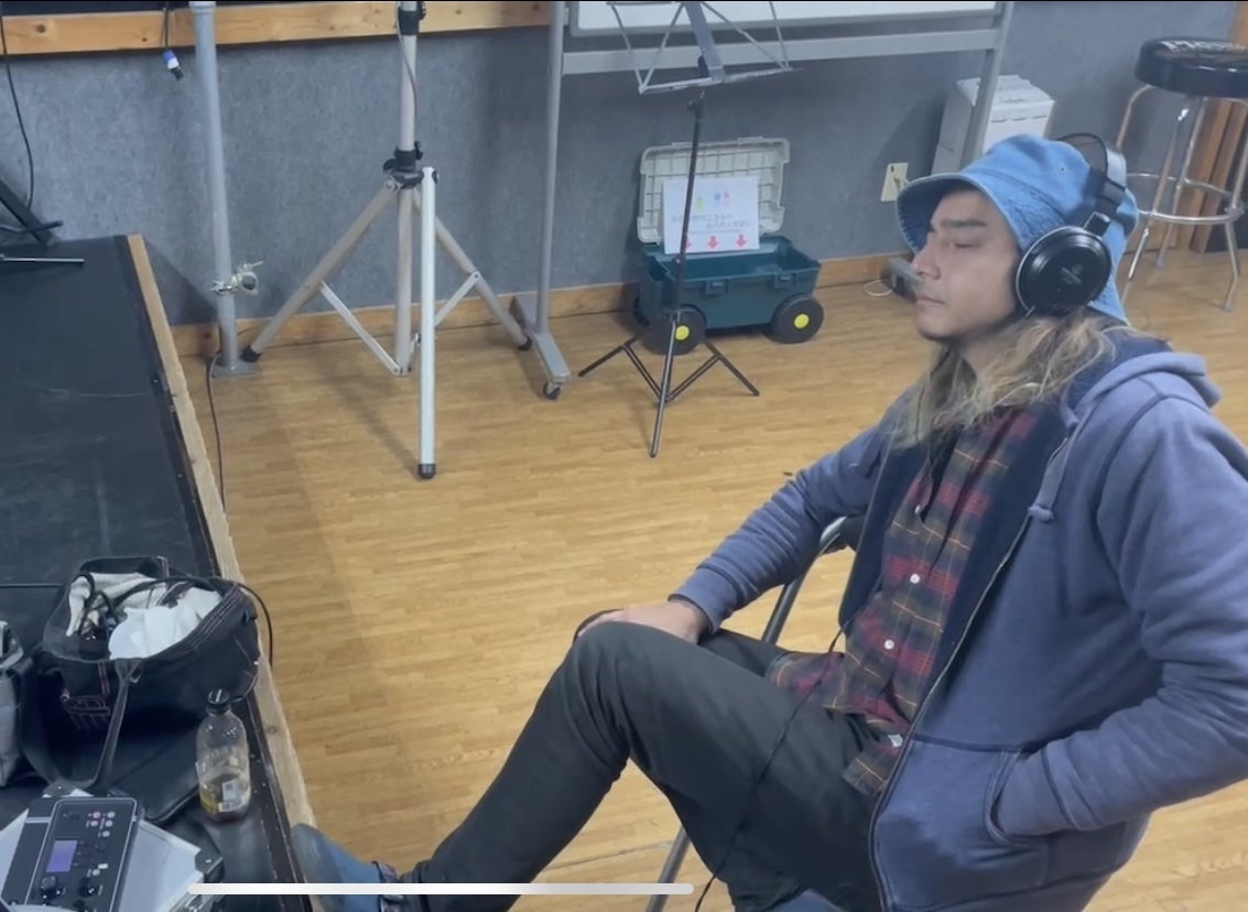 ギターの沼尻が見守る中、玲央奈は淡々とレコーディングをきちんとこなしております。