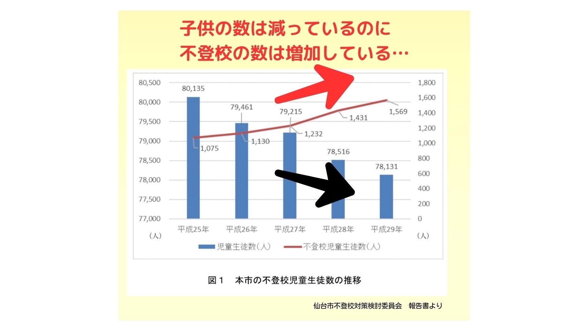 その原因は様々ですが・・・子どもの生きづらさ、学校に行かないと選択する子どもたちが増え続けているのは明らかです。