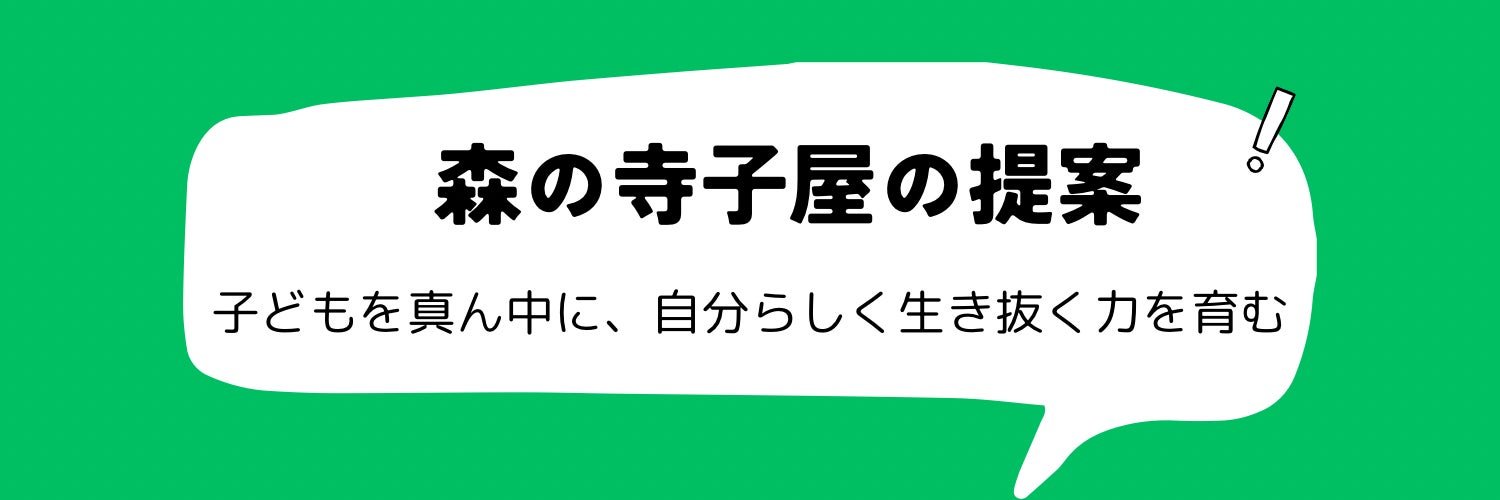 あの頃の自分が欲しかったものを、次の社会を作っていく子供達に与えてあげたい。私達は森の寺子屋さんに