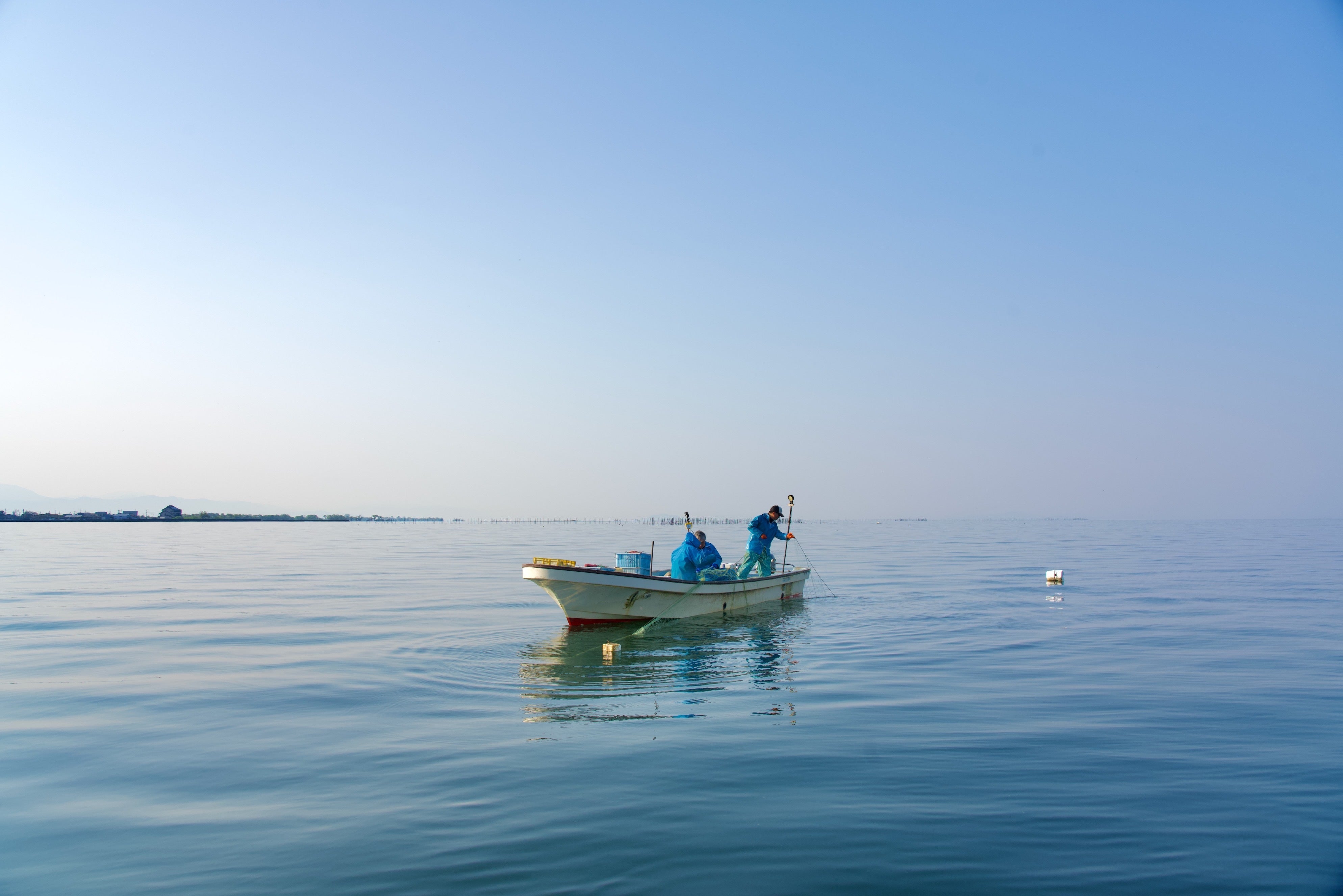 琵琶湖の刺網量。卓球やバレーボールのネットのような網を仕掛け、