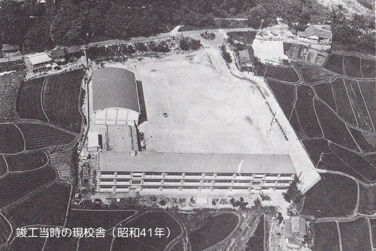 「比良げんき村」からの眺望明治7年(1874年)にその前身となる学校が三つの集落ごとに設立され、その後統合されて「小松尋常高等小学校」「小松国民学校」と名前を変えつつ、昭和22年に「小松小学校」となりました。統合当時の校舎は現在の南小松・八幡神社のあたりにありましたが、昭和41年に現在の場所に新校舎が完成し、今日に至ります。
