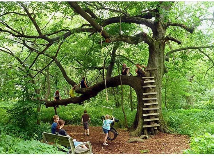 田舎のようなアットホームさを。木々をつかったアスレチックなどを用意。
