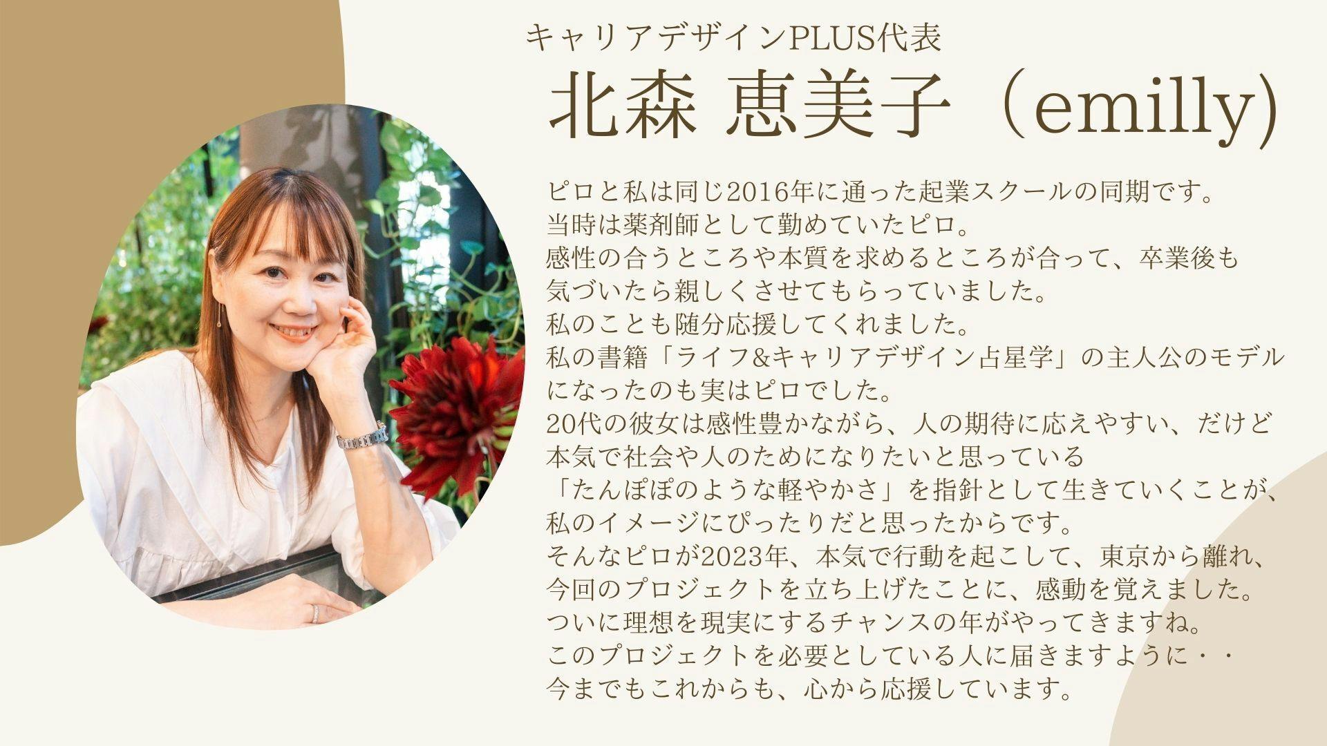 昨日に引き続き、社会起業大学の繋がりで、Emillyこと北森恵美子さんから応援メッセージをいただきました!