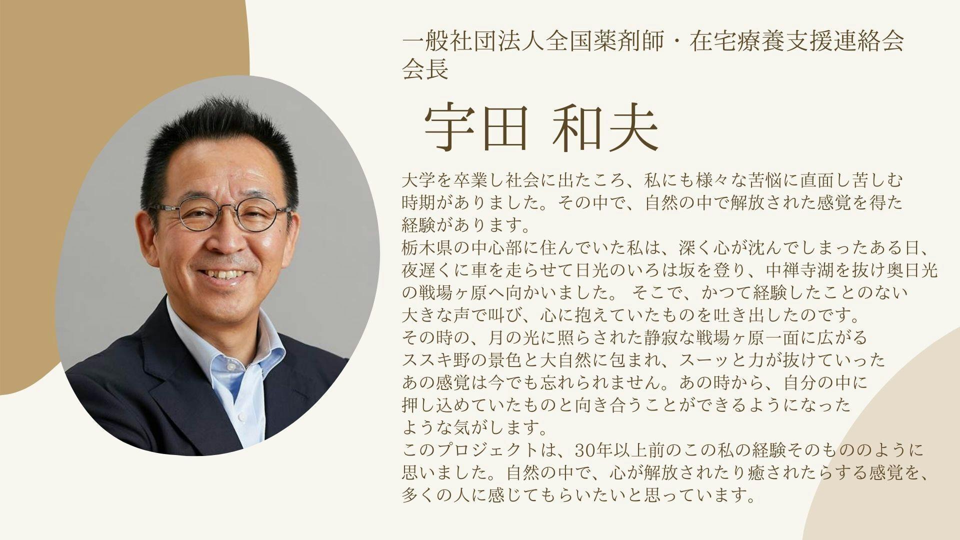 宇田さんは、地域の健康と福祉を支えるトップリーダーとして、地域のみならず全国の薬剤師業界にも長年貢献されてきており、いつも地域のためになにができるのかを真摯に考え、実際に行動に移されているお方です。