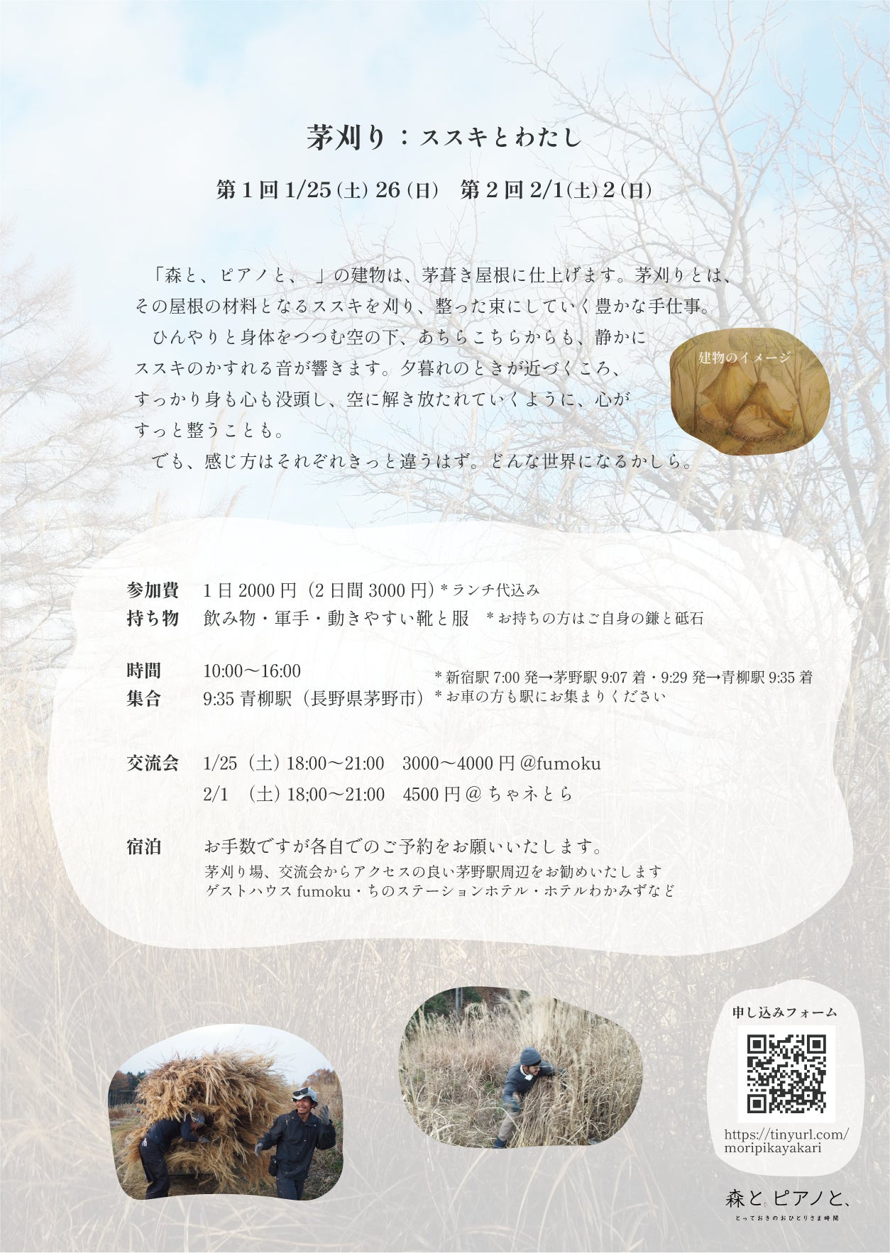 *二日間のワークショップとして企画しております。一日のみの参加の場合は、同日程に開催している茅刈りイベントへの参加を、ご検討ください。