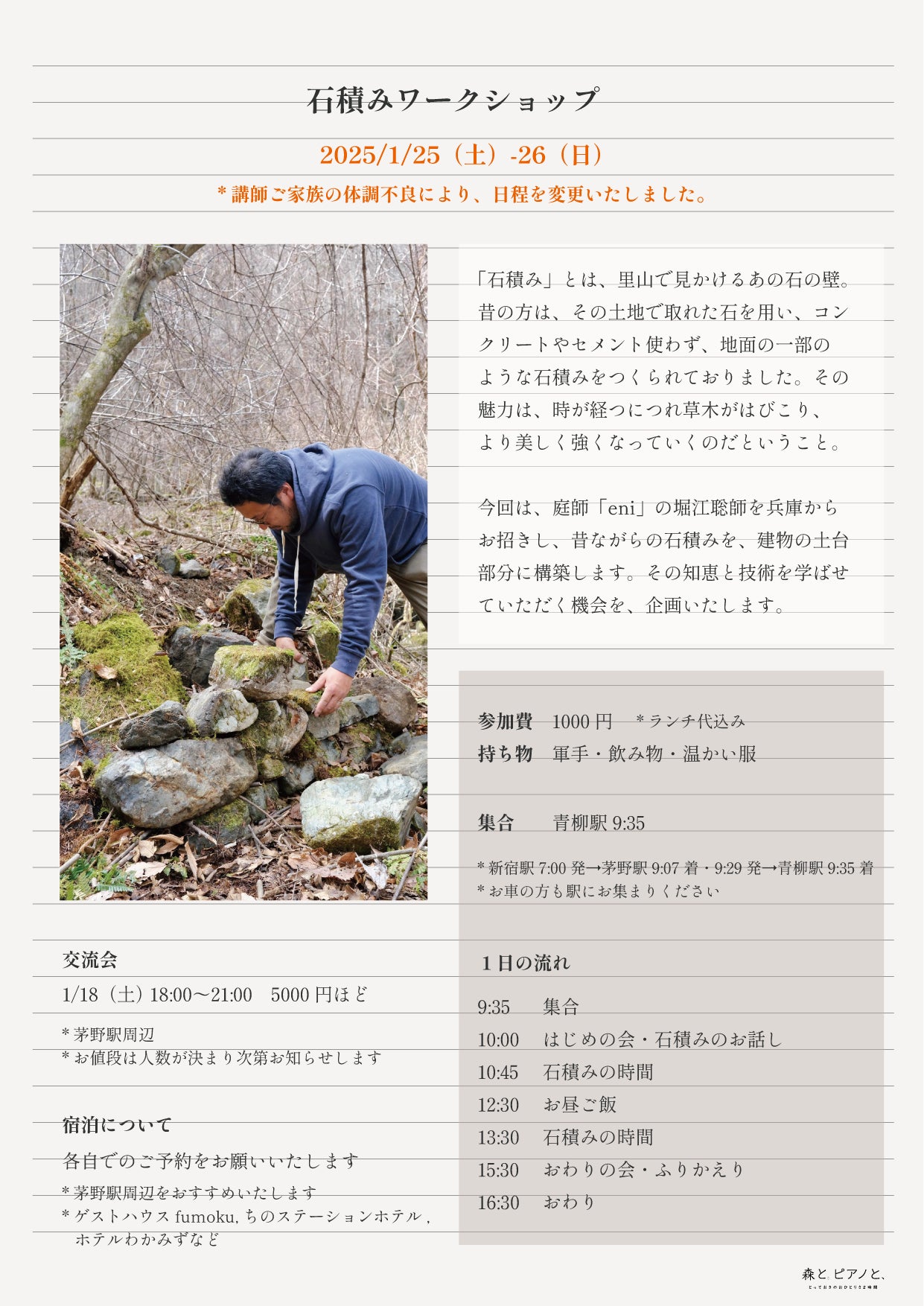 1月2月の「石積みワークショップ 」「茅刈りイベント」ぜひ、みなさまも参加しませんか?