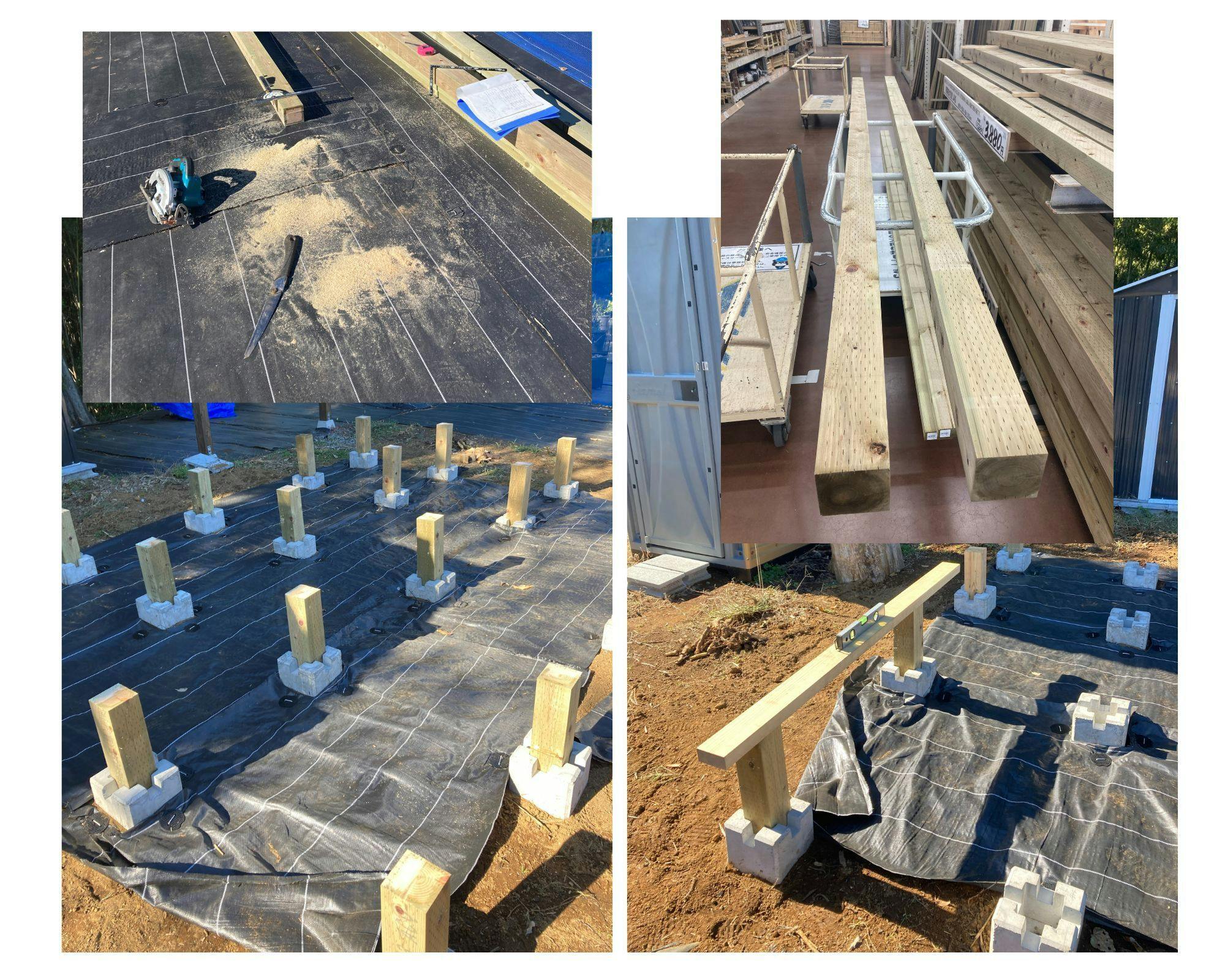今回、束柱(つかばしら)の設置が終わったので、次は土台外周に移ります。