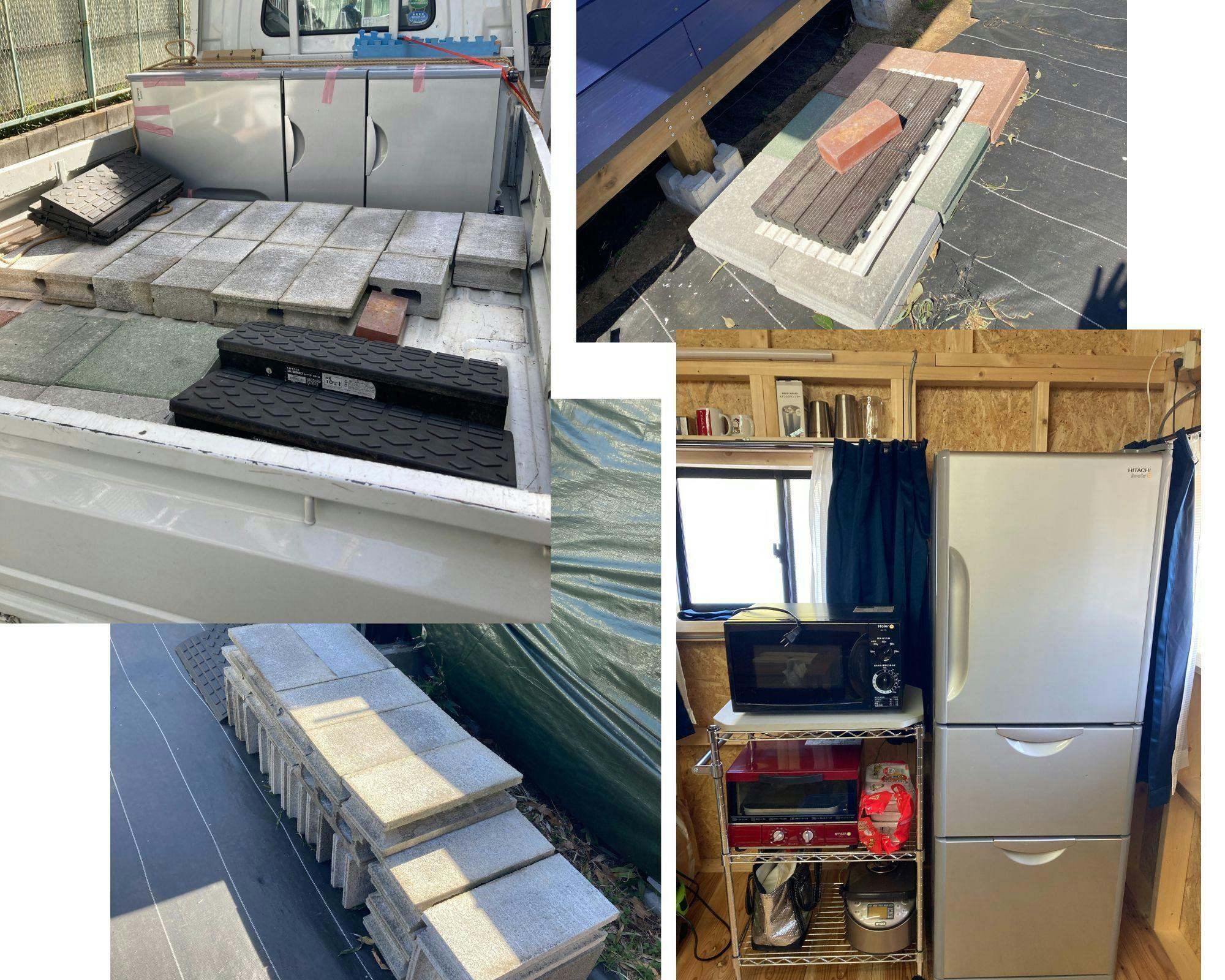 トラックで冷蔵庫、ついでに家のお庭に転がっていたコンクリブロックやレンガなども運搬しました。