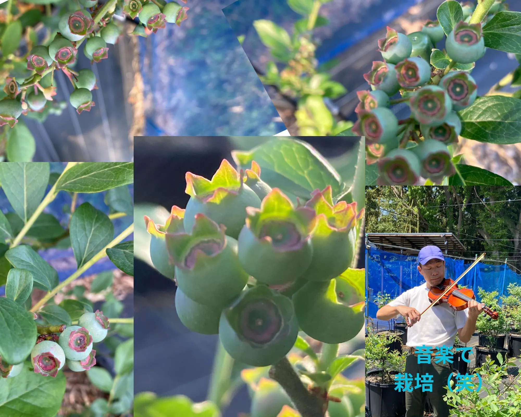今のわが農園は白い花から緑の実や若い芽、葉が生い茂り、色の変化を楽しめます。