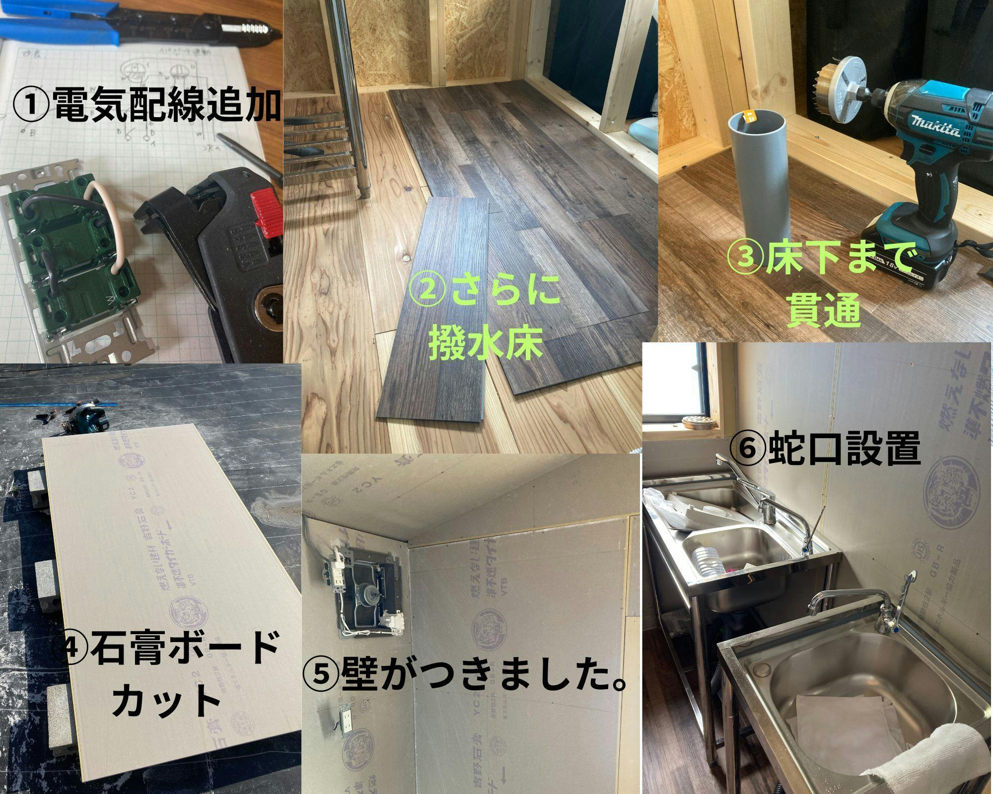 やっと壁を張りました。食品営業許可を取るために密閉された空間を作らねばならない。
