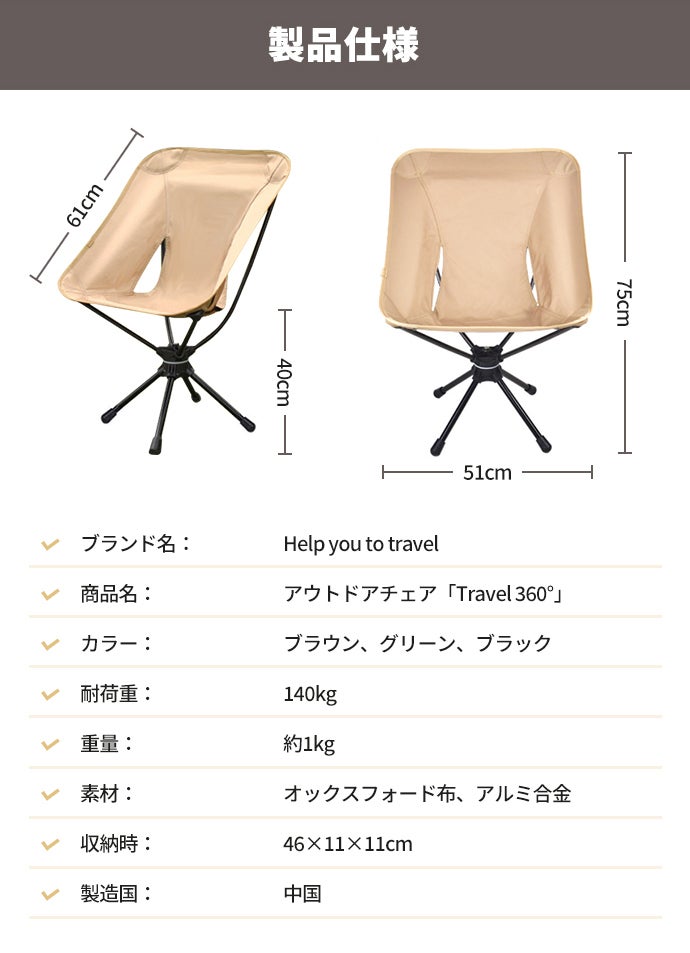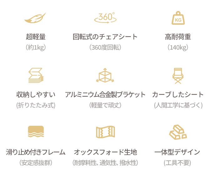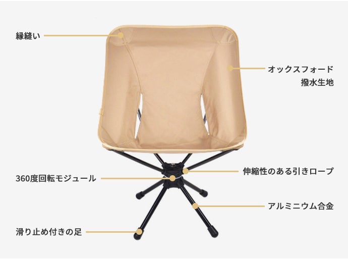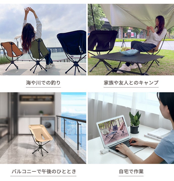 回転式のアウトドアチェアは、立ちっぱなしのストレスをなくし、活動の幅を広げ、アウトドアライフをより楽しくしてくれます。