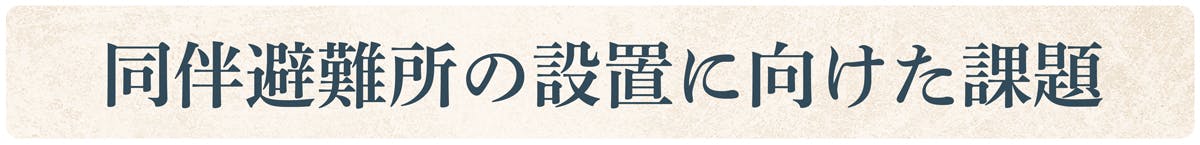 上記のような同伴避難所を作るために、クリアしなくてはいけない課題があります。
