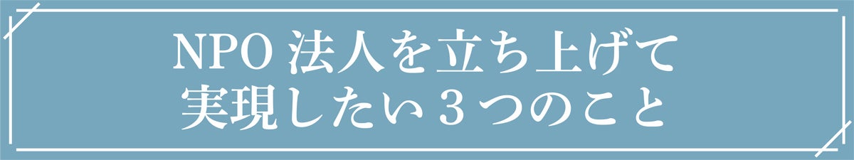 しかし、物件を借りる際などにも条件面で何度も大きな壁にぶつかる中で、個人の活動に限界を感じ、この度NPO法人を立ち上げる運びとなりました。