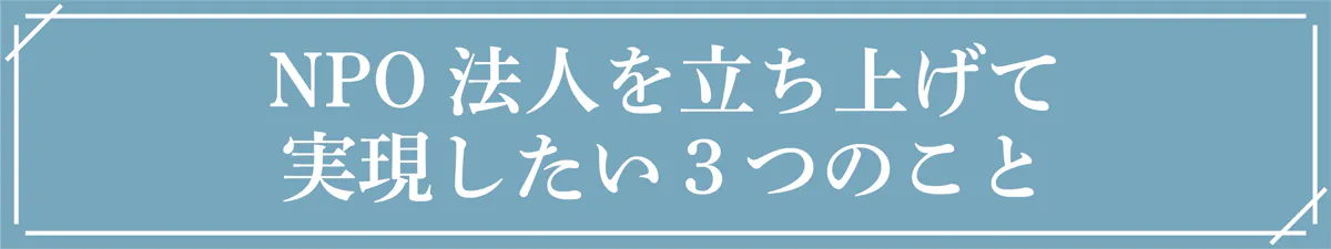 上記のような環境づくりに向けて、まずは2023年内にNPO法人立ち上げを目指します。