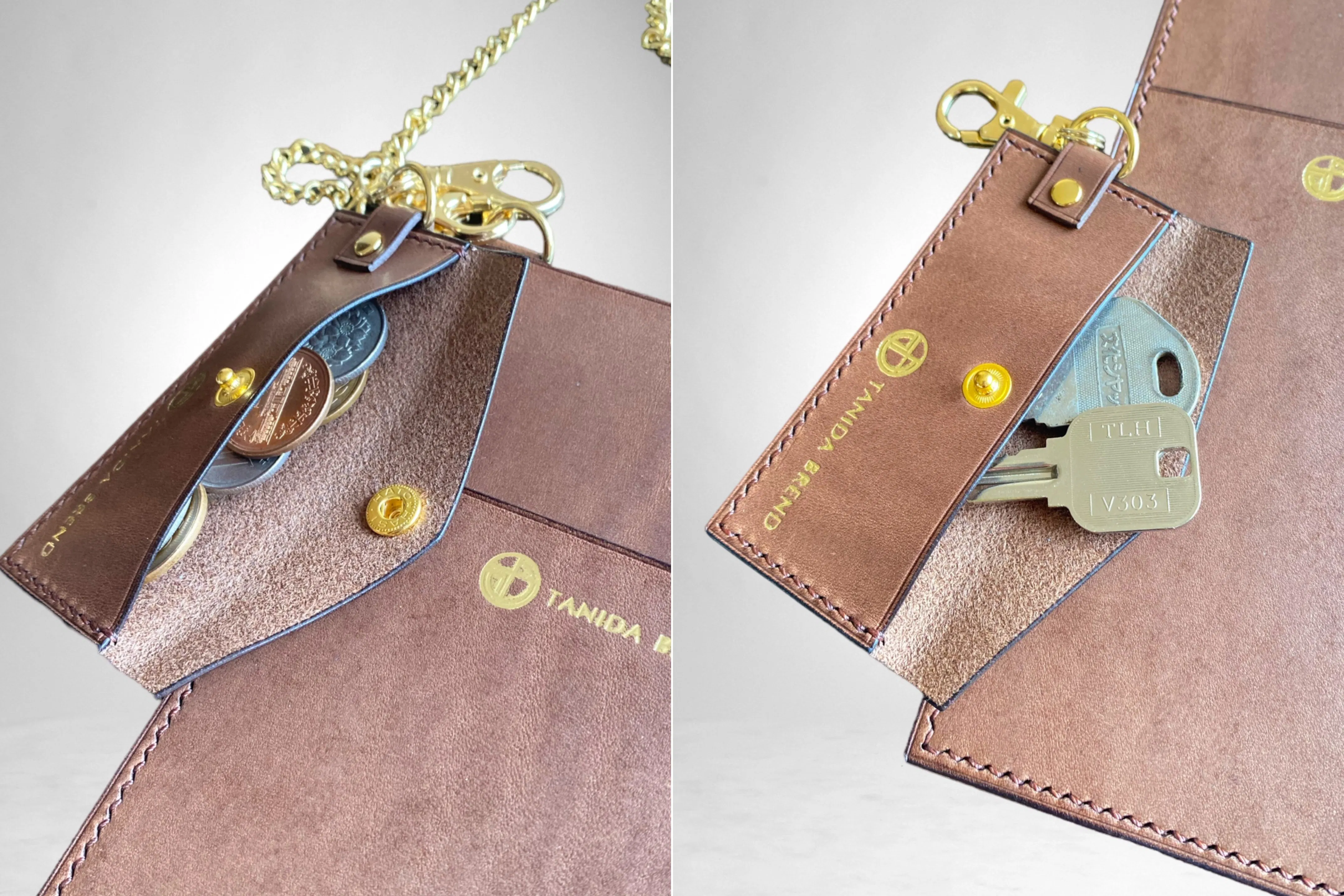 ショルダー、Dカン、カシメと全ての金具で使用しエレガントな仕上がりとなっています。