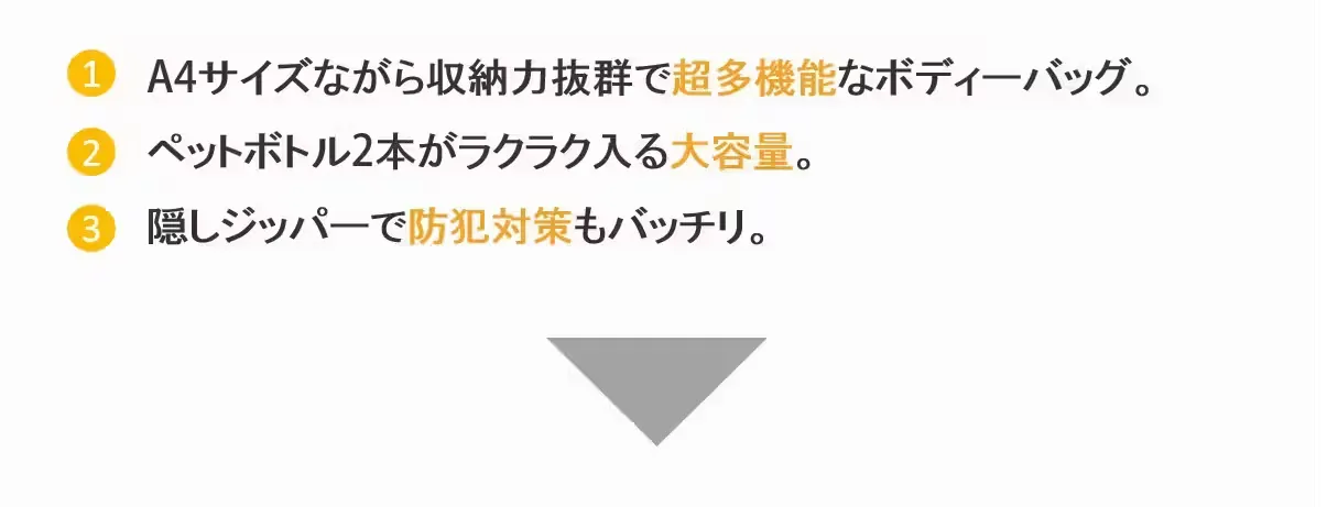 当社は、皆様がワクワクしていただける製品を提供していきたい、という思いで立ち上げました。事業運営においては「小さな幸せ、身近な幸せを届ける」をミッションとし、「日本未上陸の製品」にフォーカスして、日常生活のプラスαになる商品のご提供をしております。ビジネスからプライペードまでオールラウンダーな『ボディバッグVENCO』は、A4サイズながら収納力抜群で超多機能なボディバッグです!これさえあれば、毎日の通勤も、手ぶらで場所を取らずに、快適になるでしょう!本プロダクトによって、皆様が快適な生活を過ごしていただけたら幸いです。みなさまの熱いご支援を賜りますよう、何卒宜しくお願い申し上げます。