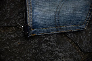 また、ポケット部分は、着用に伴って「歪み」も生じます。新品時、綺麗に直線に縫われていたポケットのステッチ部分は、使い込むうちに少しずつ湾曲していきます。同じ一本のデニムでも左右の2つのポケットでは、形に差が出てきます。