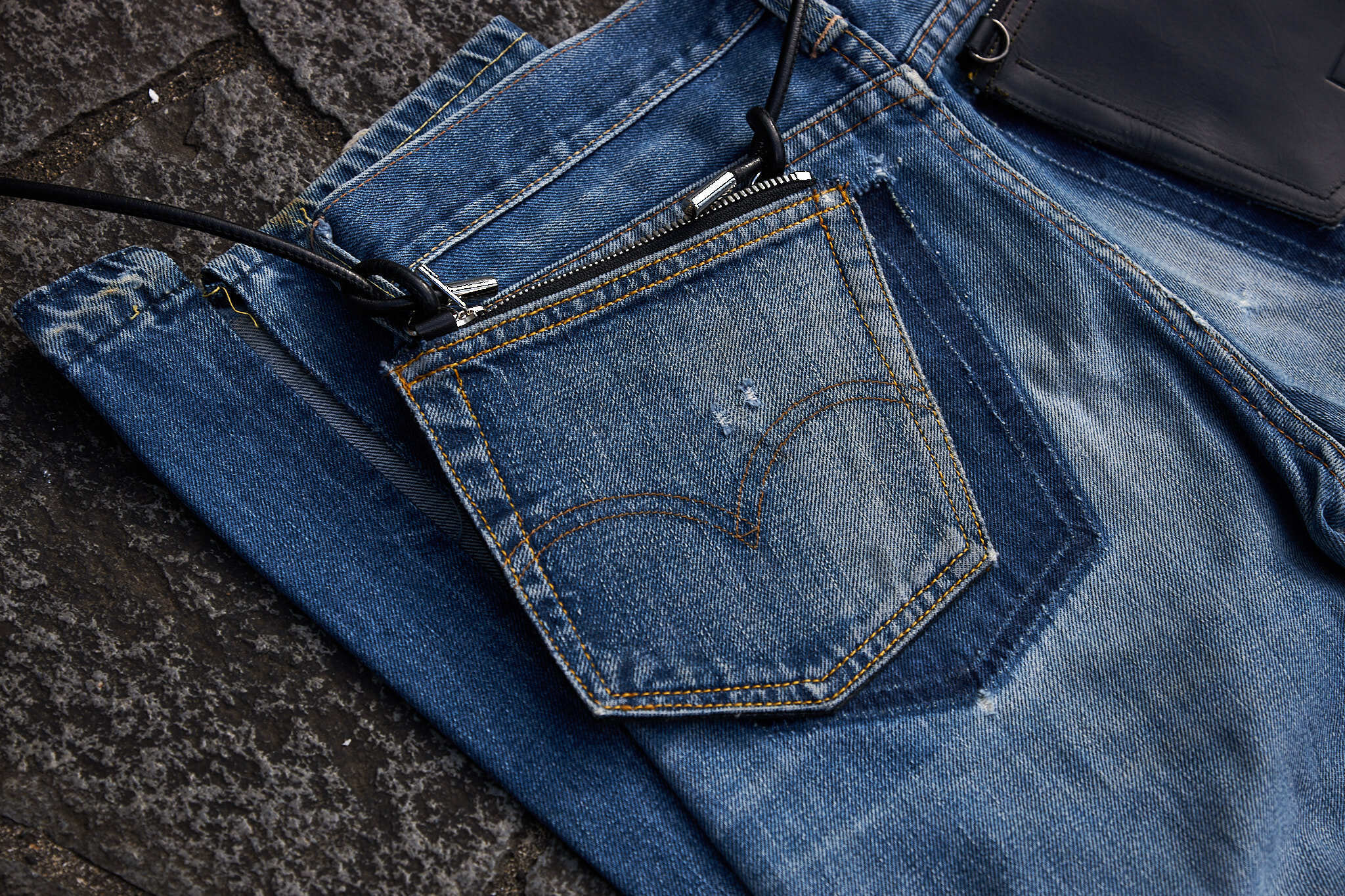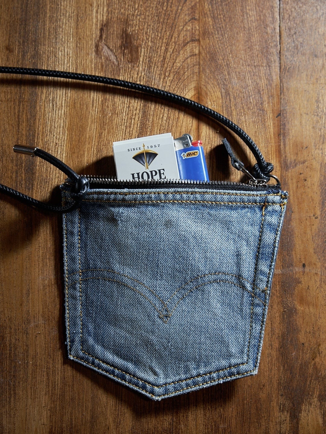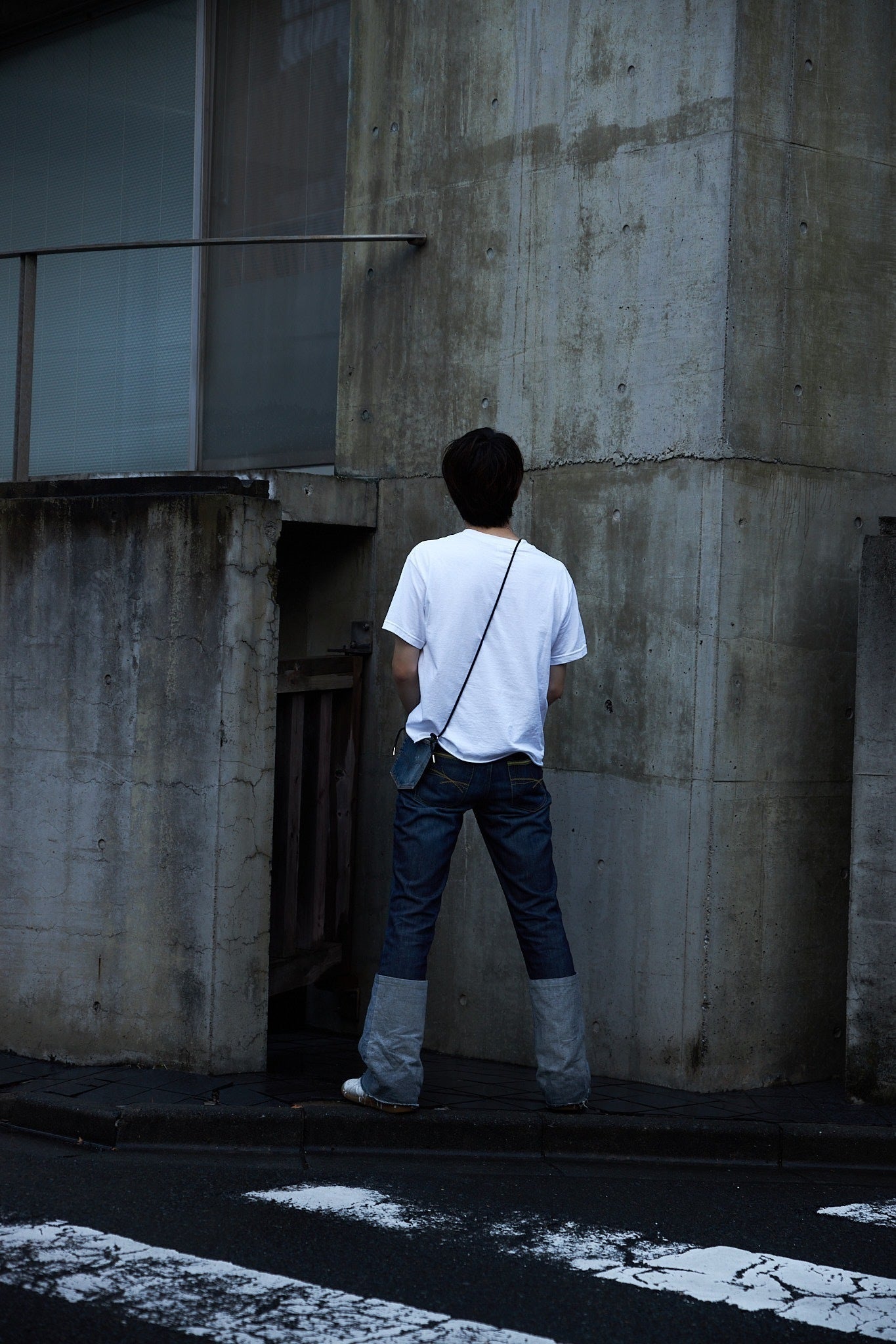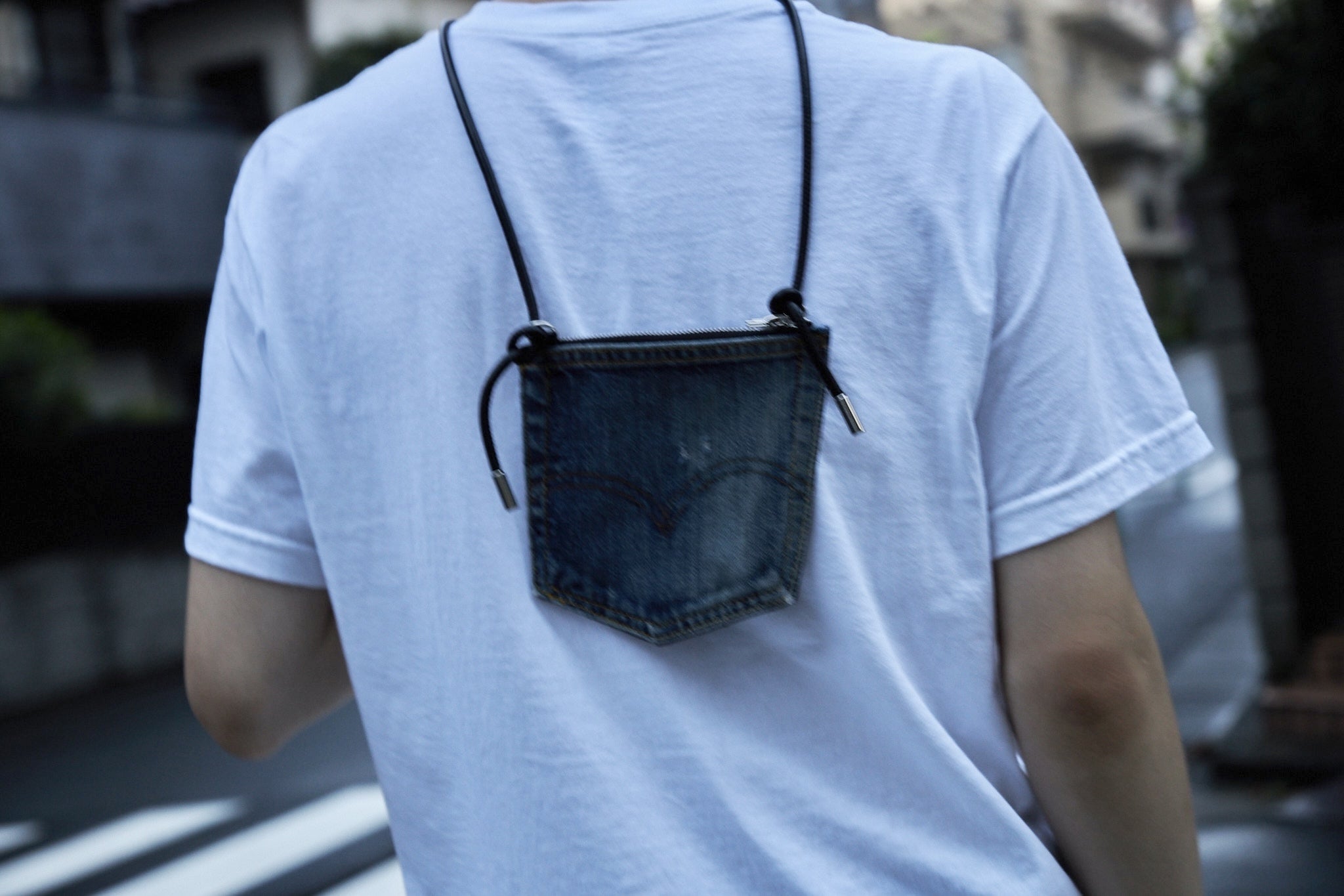 現在、Levi’s BigEなどのヴィンテージの素材を使った靴の製作に取り組んでいます。自分のブランドを立ち上げ、製品を販売する過程にあります。今回は、靴の製作では使用しなかったデニムのポケット部分を使いバッグの製作を行います。