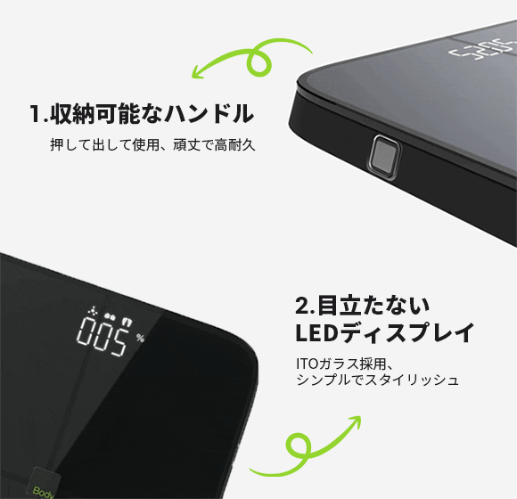体重だけ測りたい時は、ハンドルを使用せずにご使用ください。体重は本体のディスプレイに表示されます。