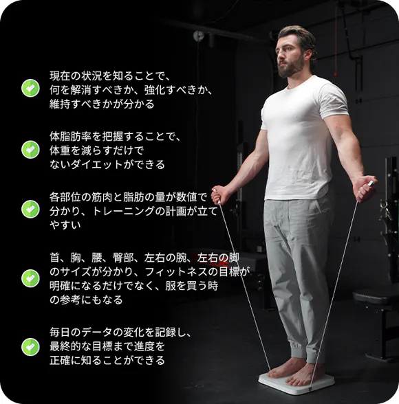 スポーツジムへ行く時間がない方も、自宅でトレーニング後身体の状態を把握できます。