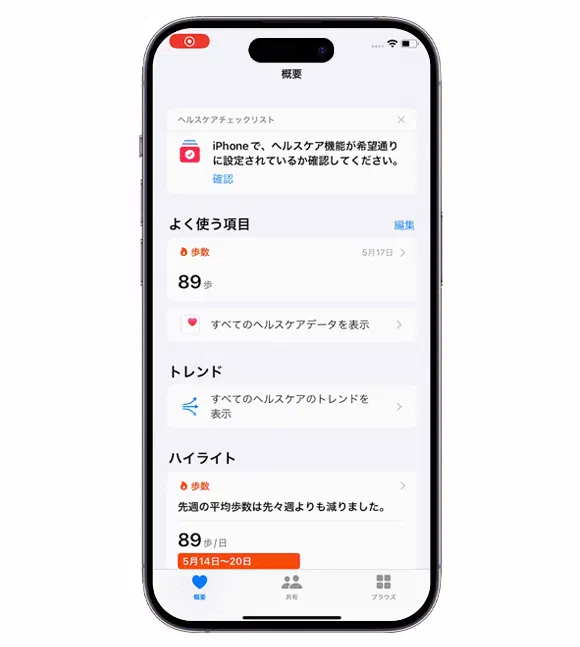 アプリでアップルの「ヘルスケア」と統合し、iPhoneで健康データを便利に把握することができます。
