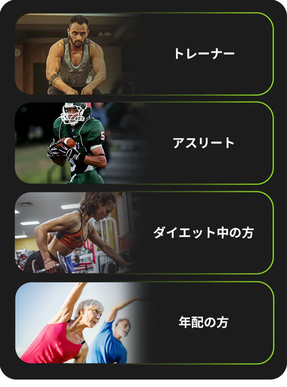 BodyPediaはプロのアスリートやスポーツジムのトレーナーから、旅行先でも運動を欠かさない方、ダイエット中の方、健康を維持したい年配の方まで、様々な方におすすめです。どなたでも簡単に操作で、体の状況を把握することができます。