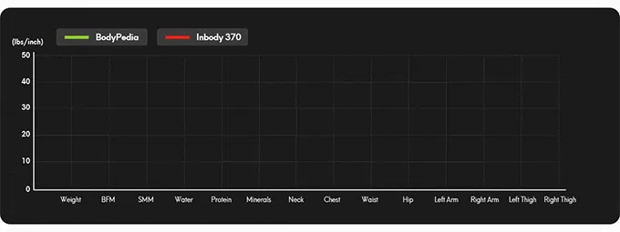これだけではありません!BodyPediaはWHR(Waist Hip Ratio)、部位別筋肉量、部位別脂肪量まで正確に測定できます。多様なデータを可視化し、いつでもどこでも確認可能です。