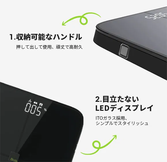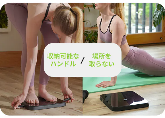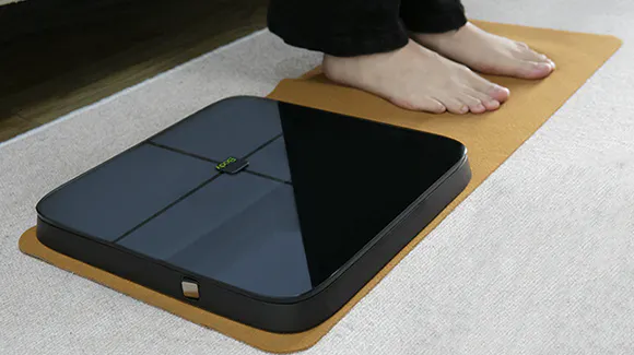 BodyPediaは重さ2.35kg、厚さ33mmで、家庭用体重計のようにスリムな設計です。フラットでスマートなデザインですので、収納もしやすく、また部屋に置いておいてもインテリアの邪魔になりません。