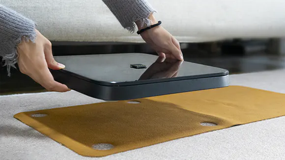 「BodyPediaレザーカバー」が、これらの問題を解決することができます。吸水パッドと保護カバーがひとつになった新製品で、普段はかぶせておいてBodyPediaをほこりや異物から守り、測定する前には濡れた足を乾かすことができますので、大変便利です。