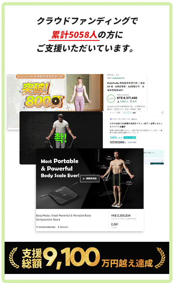 BodyPediaは、健康を重視する皆様が家でも全身の正確なデータを測定できる「究極のツール」を目指して開発されました。BodyPediaを選んでくださった皆様が、一日も早く健康やダイエットの目標を達成されることを願っています。