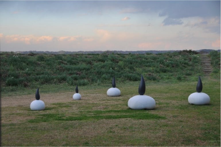 彫刻家イサム・ノグチ氏が使っていた宮城県の石の採石場に移り住み、宮城県を中心に市町村に石のモニュメントを多数設置。