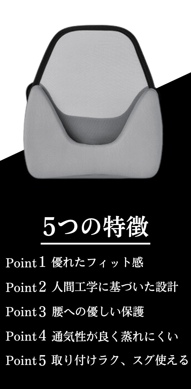 両サイドから優しく包みこみ、腰部にかかる負荷をサポート。圧迫感を軽減して腰を保護してくれます。