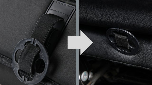 A.カンタンに取り付け可能です。座面と背面のシートの間から固定具を通すだけです。