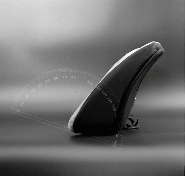 これは腰が正しく伸び、脊椎圧力が軽減される最適な角度です。
