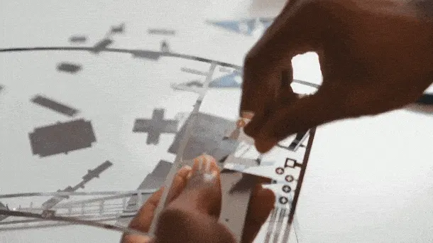 はめ込んだりペンチを使ったりして、パーツを組み立てていきます。