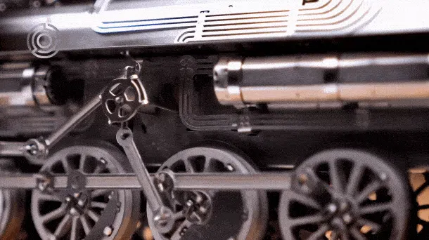 レールがあってもなくても、力強く車輪を回転させながら、進みます。