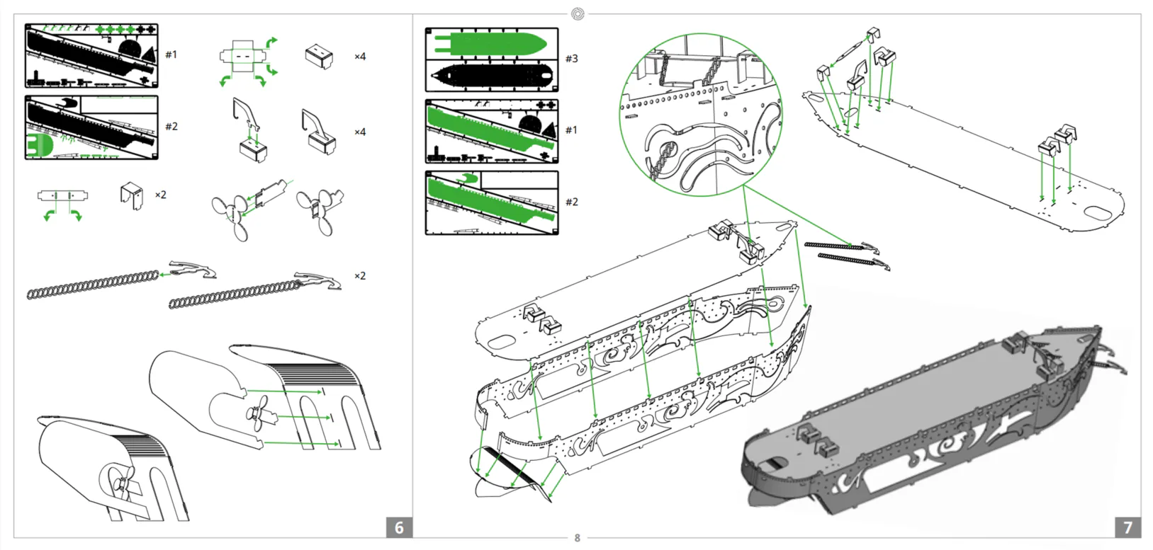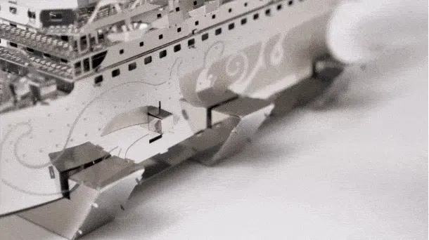 2本のマスト、4本のパイプ、4つのデッキ、アンカーチェーン、はしご、手すりなど、船舶模型ファンにはたまらないディテールが満載です。