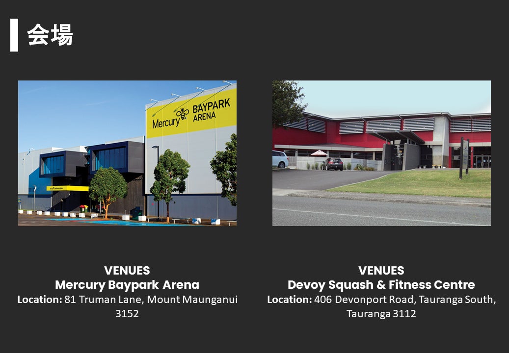 まず始めに、今大会使用する会場ですが、メイン会場とサブ会場の2つがあります。メイン会場は、「Mercury Baypark Arena」で様々なイベントやスポーツを開催できる多目的スタジアムとなっています。昨年には、ここでPSAのシルバーイベントであるNew Zealand Openや男女の団体戦Nations Cupが開催され、今スカッシュ界で最も盛り上がりを見せている場所の1つだと言えます。サブ会場は、「Devoy Squash & Fitness Centre」でダブルスコート2面と4面ガラスコートを含む7面のコートを誇るニュージーランド最大級のスカッシュクラブです。