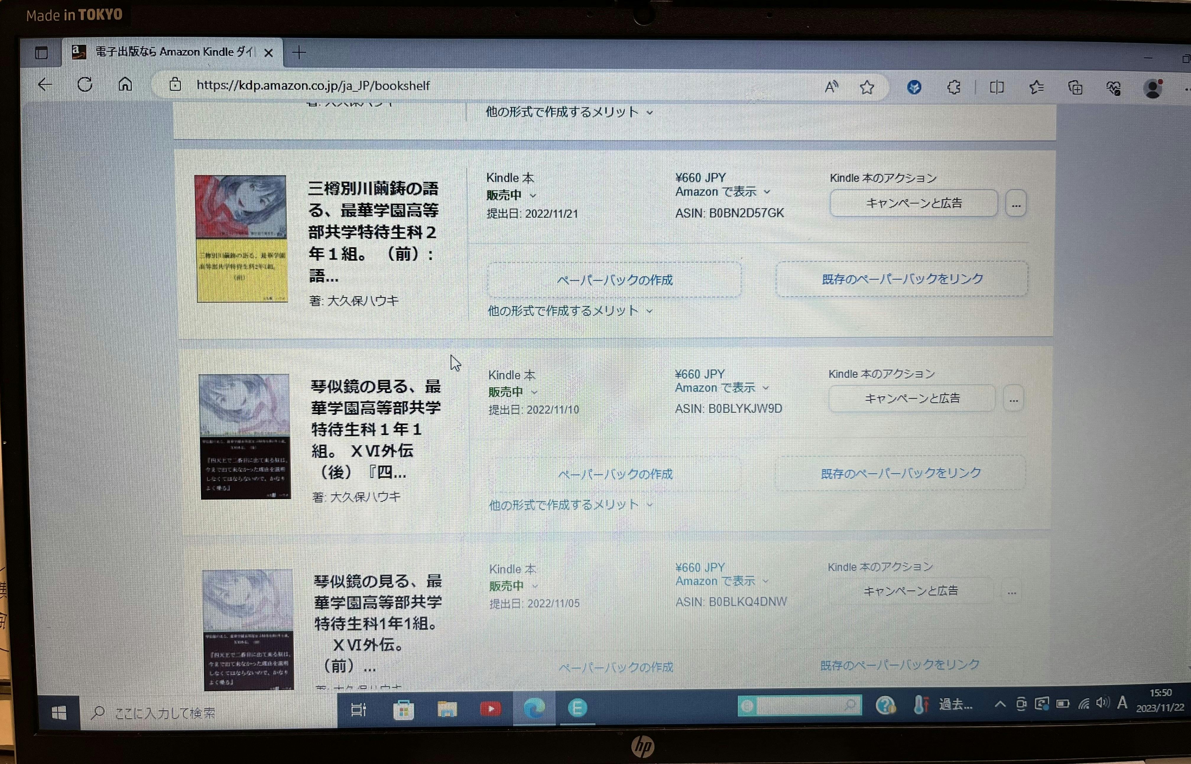 本日は電子書籍で少しでも名前を売ろうと思い、来年頭分までの無料キャンペーンをやりました。