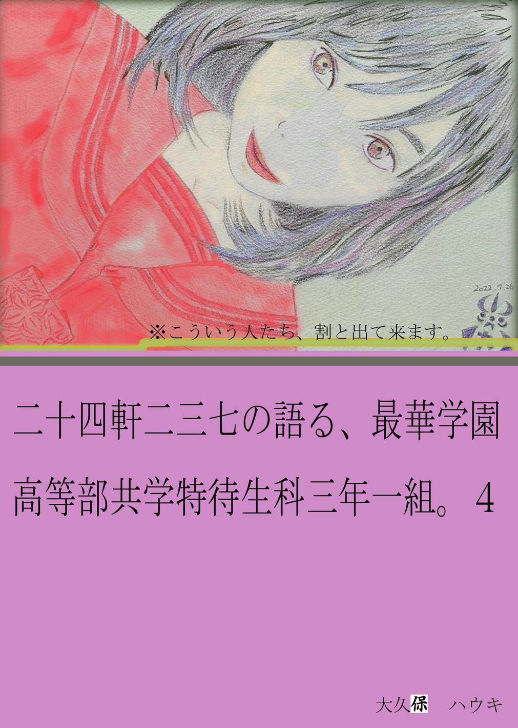 活動報告。Amazonkindleにて、最新刊である高三編の4巻をアップロードしました。まあ、ただのデータです。ペーパーバッグは作っておりません。このシリーズは学園モノであり,異能力バトルモノであり、異世界や転生、前世の魂という言葉も使っております。表紙絵は相変わらず完成しておりませんし、現代風の絵柄でもないので、プロ、セミプロ、或いはまだ見ぬ絵師の卵等、色々依頼しようと考えております。まだ産声さえ上げていない、未来の絵師を探るのも、私たちの仕事だと思っています。毎日何か報告すると思いますので、ご支援よろしくお願いいたします。ハウキでした。