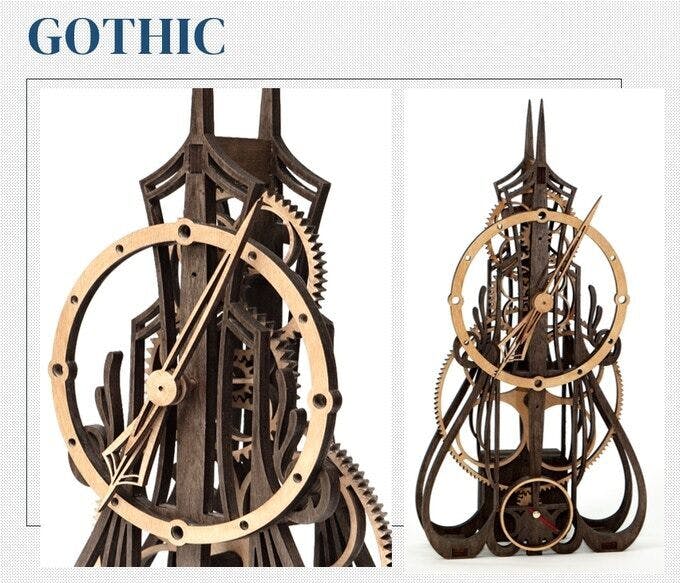 自分で時計を組み立てる楽しさ、斬新で美しいデザイン、木の温もりと高級感。