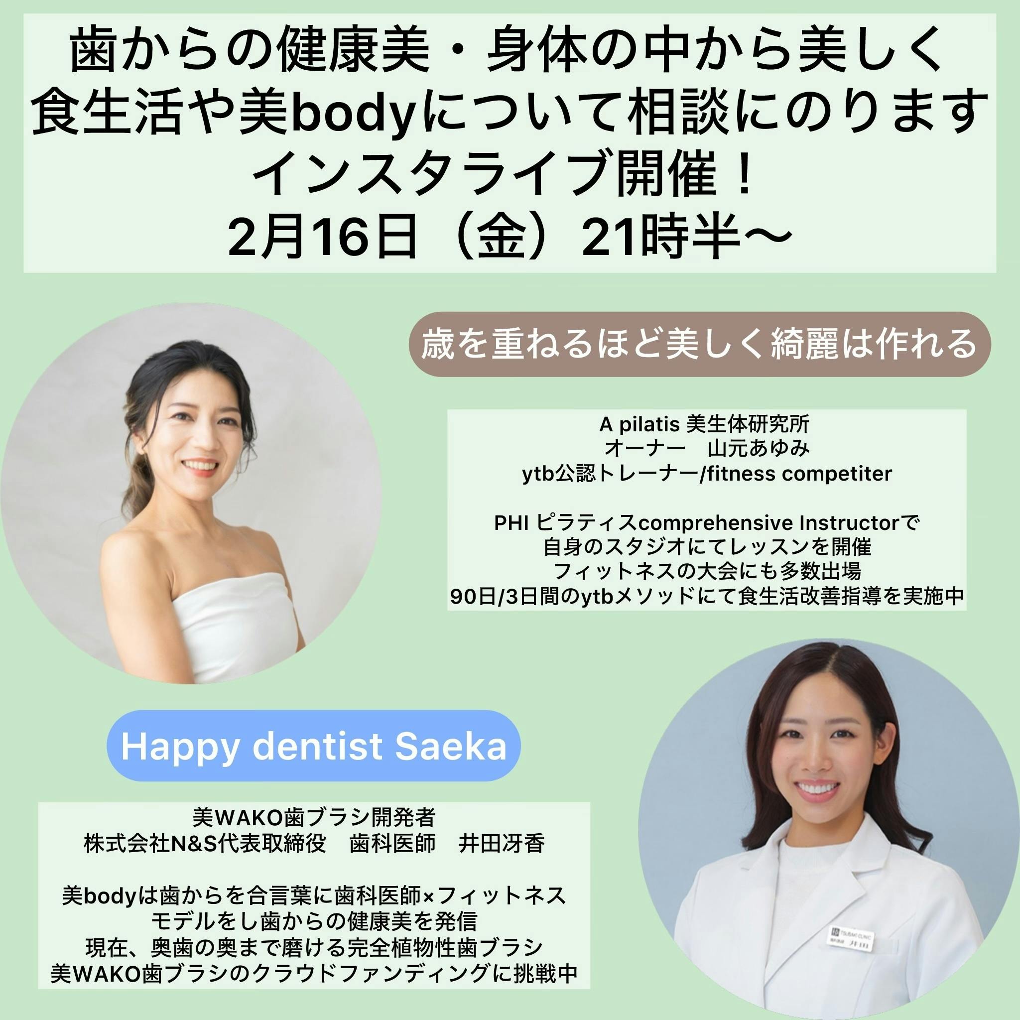 本日夜9時半〜『歯からの健康美・身体の中から美しく 食生活や美bodyについて』インスタライブを行うことになりました。