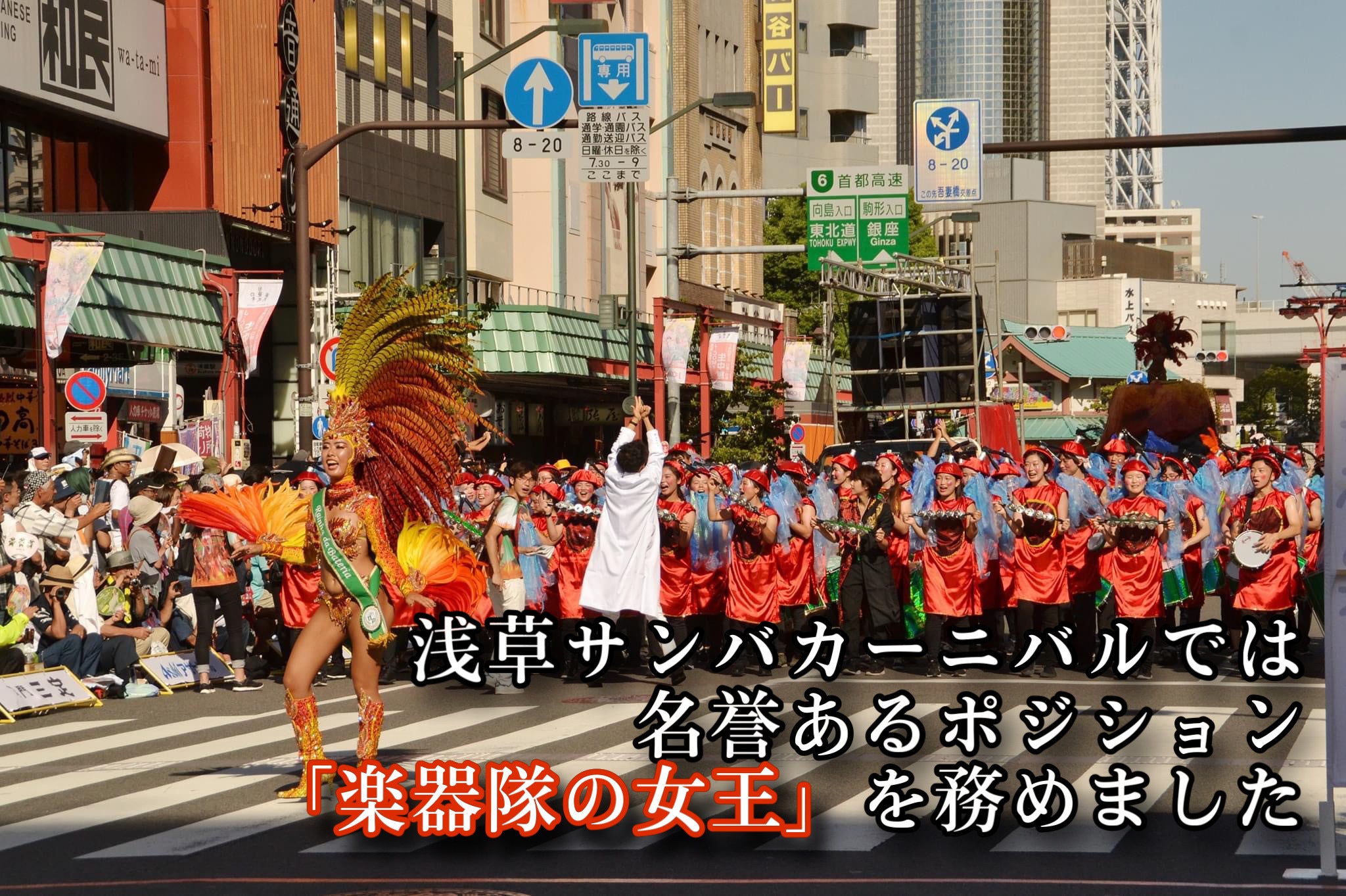 私は大学の時に、サンバに出会い、踊りを始めました。