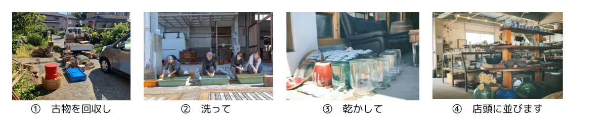ゴミとして処分されることなく、必要な人の手元に届けるため、古物・古民具・古材などの無料回収を行い、通常のリユースショップより安い金額設定で、循環を促しています。
