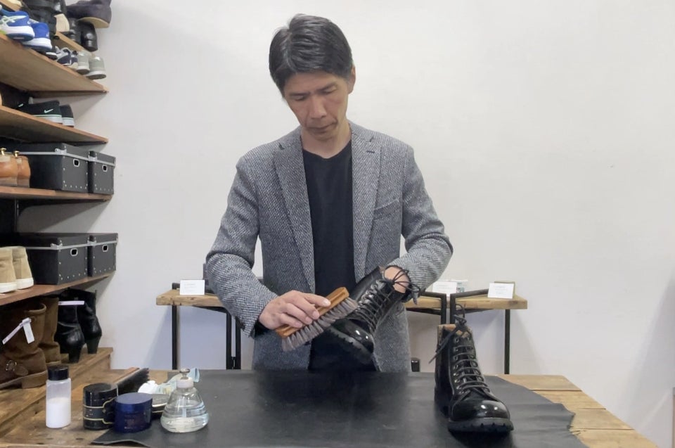 それから20年。革について独学で学びながら、海外にも勉強しに行ったりするなど知識を深め、今では国内にあるケア用品メーカー様方と情報交換しながら靴磨きサービスを提供しています。