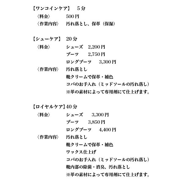 ・ワンコイン(500円)の靴磨きメニューの追加